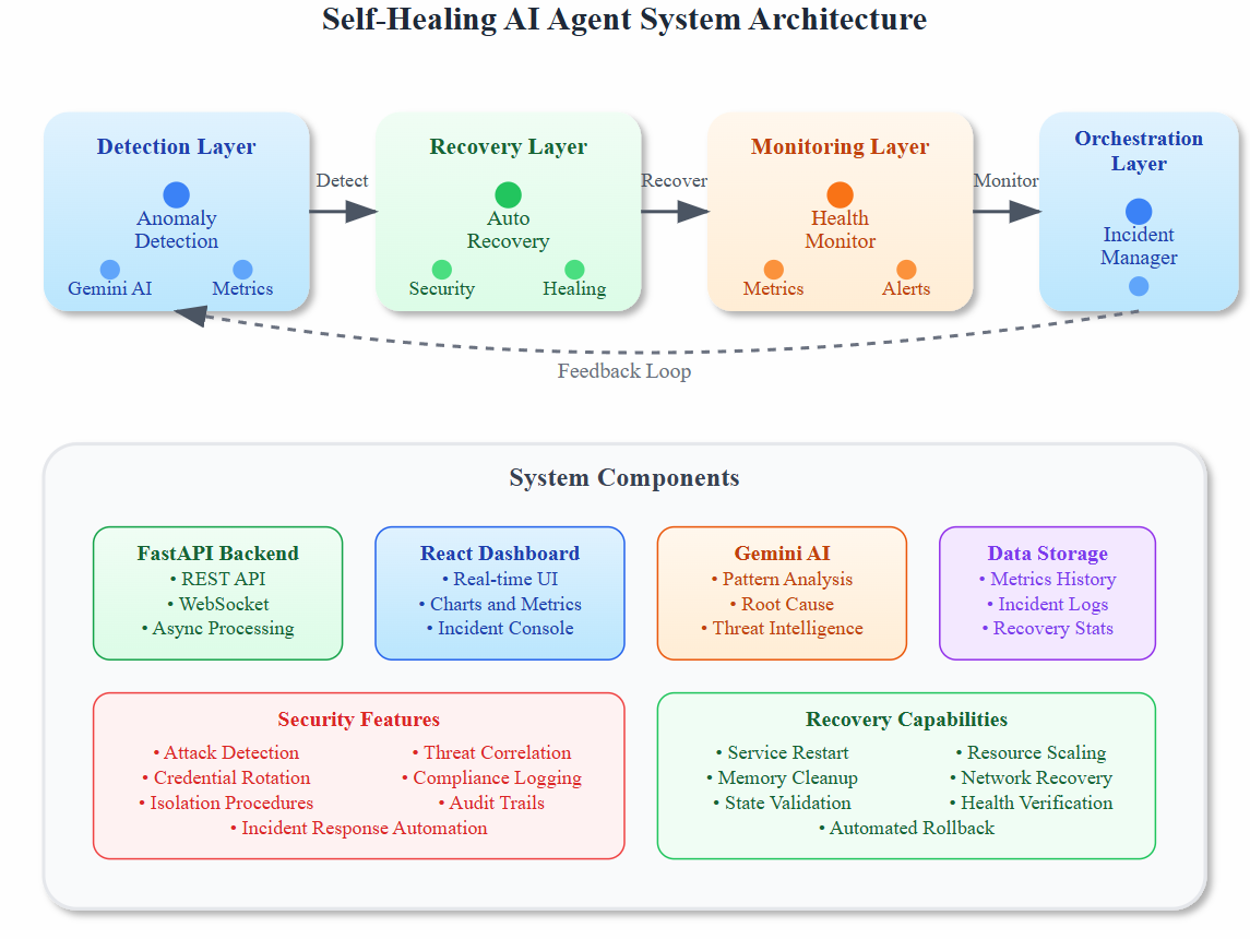 Our mission: Create a self-healing AI agent system that monitors security threats, automatically recovers from failures, and maintains compliance reporting - all while processing real user requests.