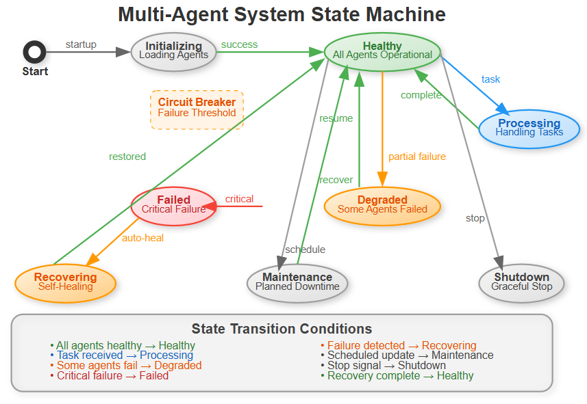 The key insight: the system automatically transitions between states. When it detects a problem, it doesn’t wait for you to fix it - it fixes itself.