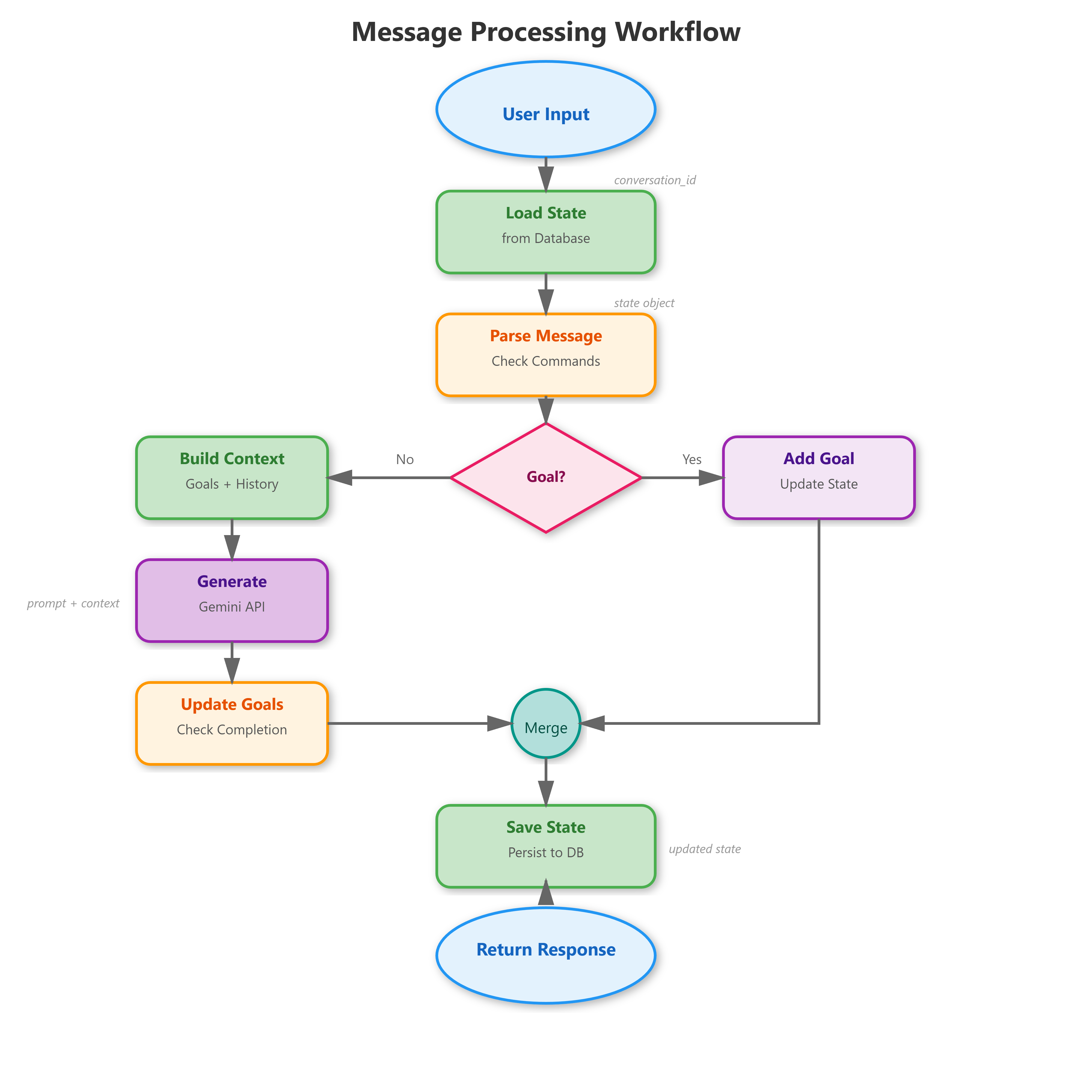 It doesn’t just respond to messages, it actively works toward objectives. When a user sets a goal like “help me understand neural networks,” your agent tracks that goal through the conversation.