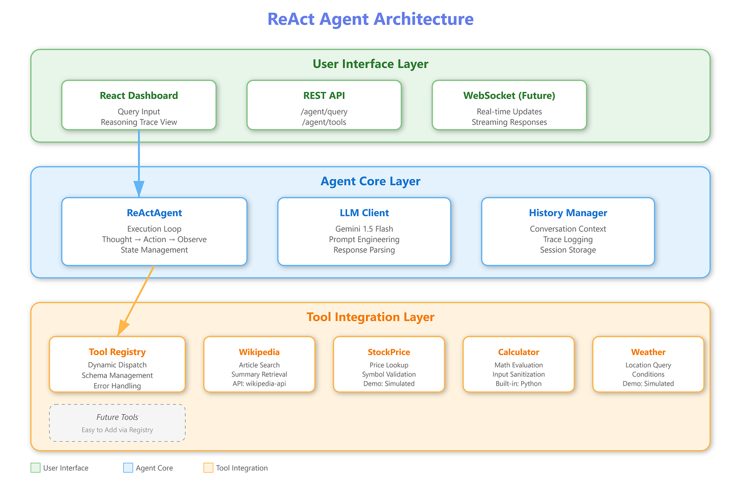 ReActAgentclass that any enterprise system can instantiate with custom tools. We transform the conceptual loop into production infrastructure.